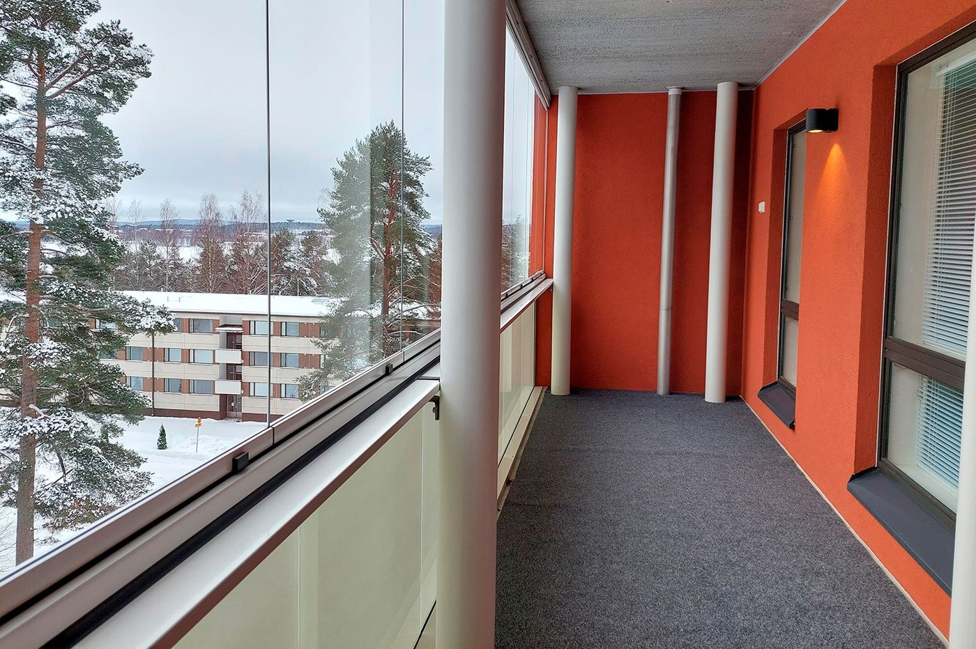 Tässä kahden huoneen kodissa on kaikki neliöt käytetty hyvin. Eteisessä on tilavat kaapistot, ja heti eteisestä aukeaa kodin keittiö, joka on sijoitettu yhdelle seinälle. Keittiöstä avautuu näkymä olohuoneeseen, jossa on tilaa ruokailuryhmälle ja oleskelulle sekä käynti kodin parvekkeelle. Iso lasitettu parveke antaa mukavasti lisää tilaa kotiin aikaisesta keväästä myöhäiseen syksyyn.