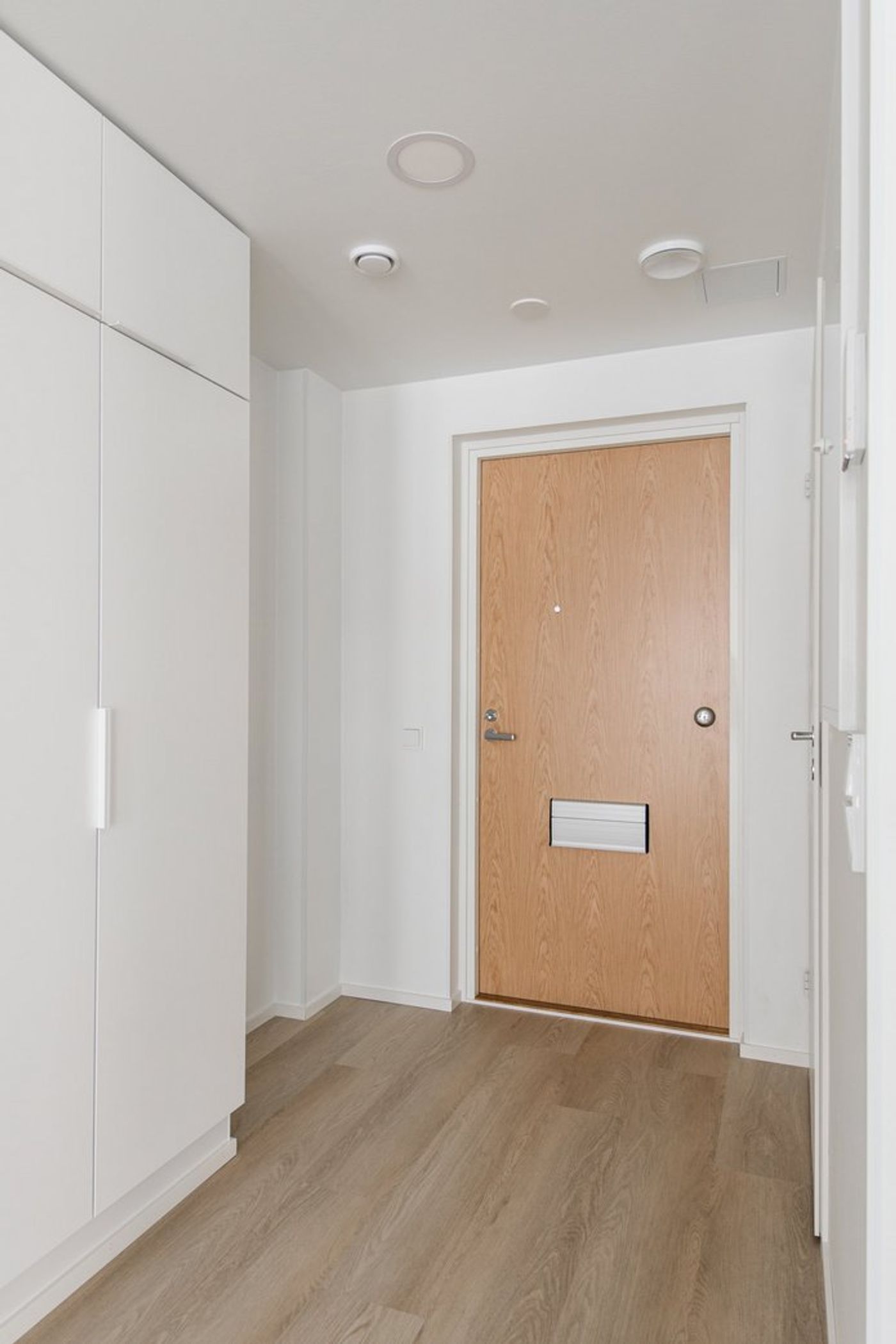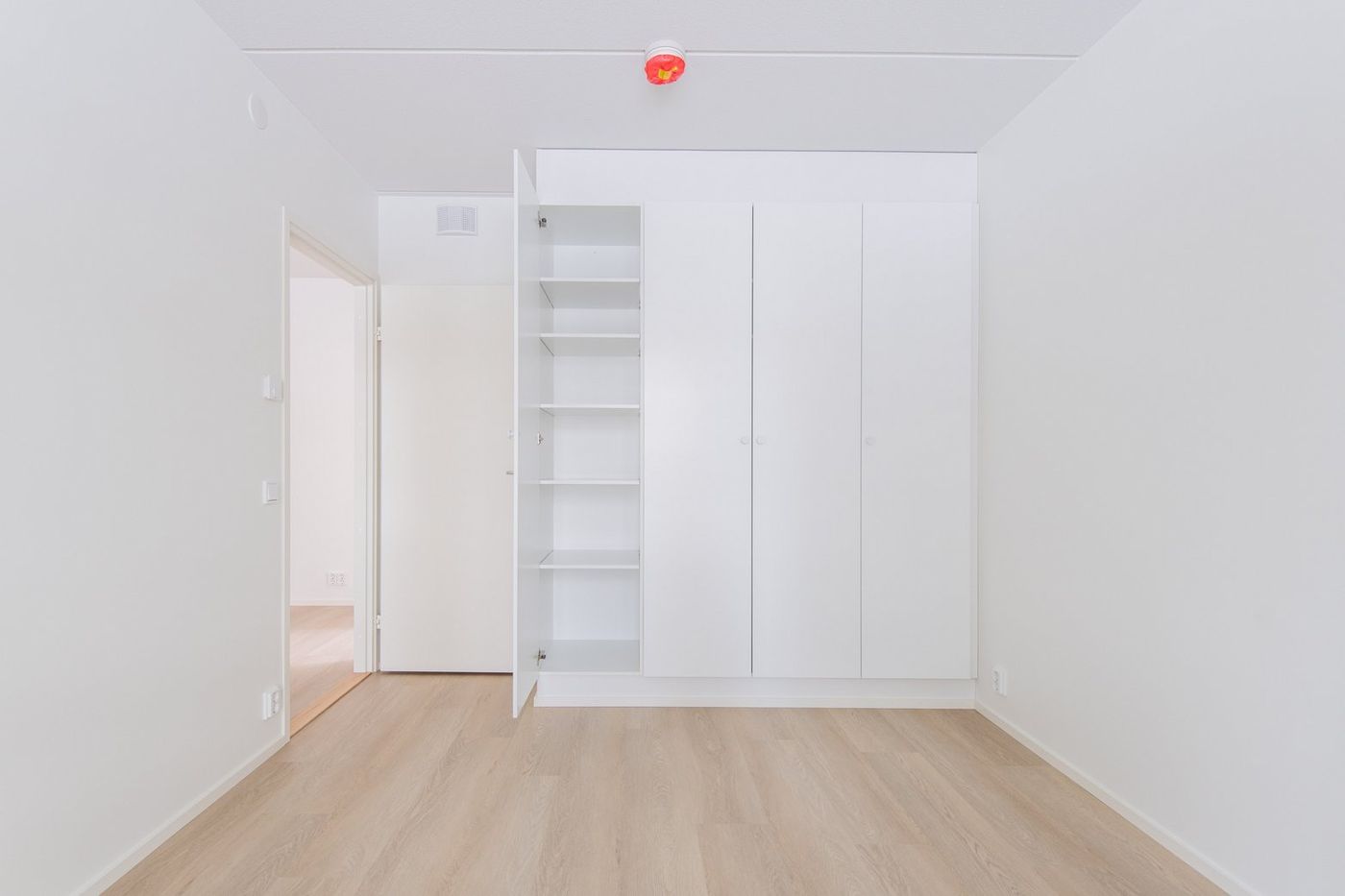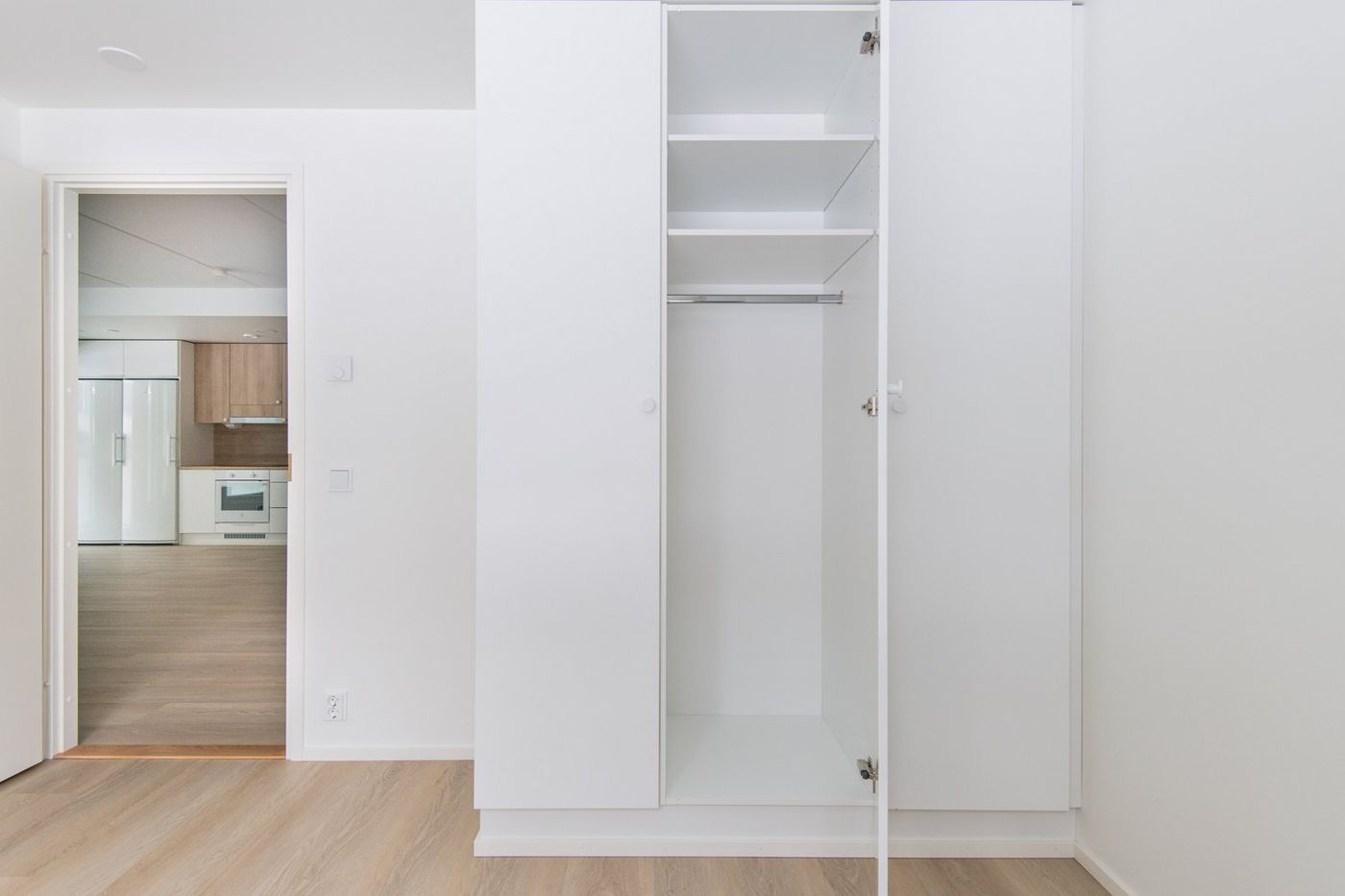 Kodin makuuhuoneissa on kiinteät tanko- ja hyllykaapistot, ja sängyn lisäksi molempiin huoneisiin mahtuu vaikkapa työpöytä tai lipasto. Kylpyhuoneessa on pyykkikaappi, varaus pyykinpesukoneelle ja kuivausrummulle sekä tilaa esimerkiksi pystymalliselle kuivaustelineelle tai vaikkapa hyllykölle.