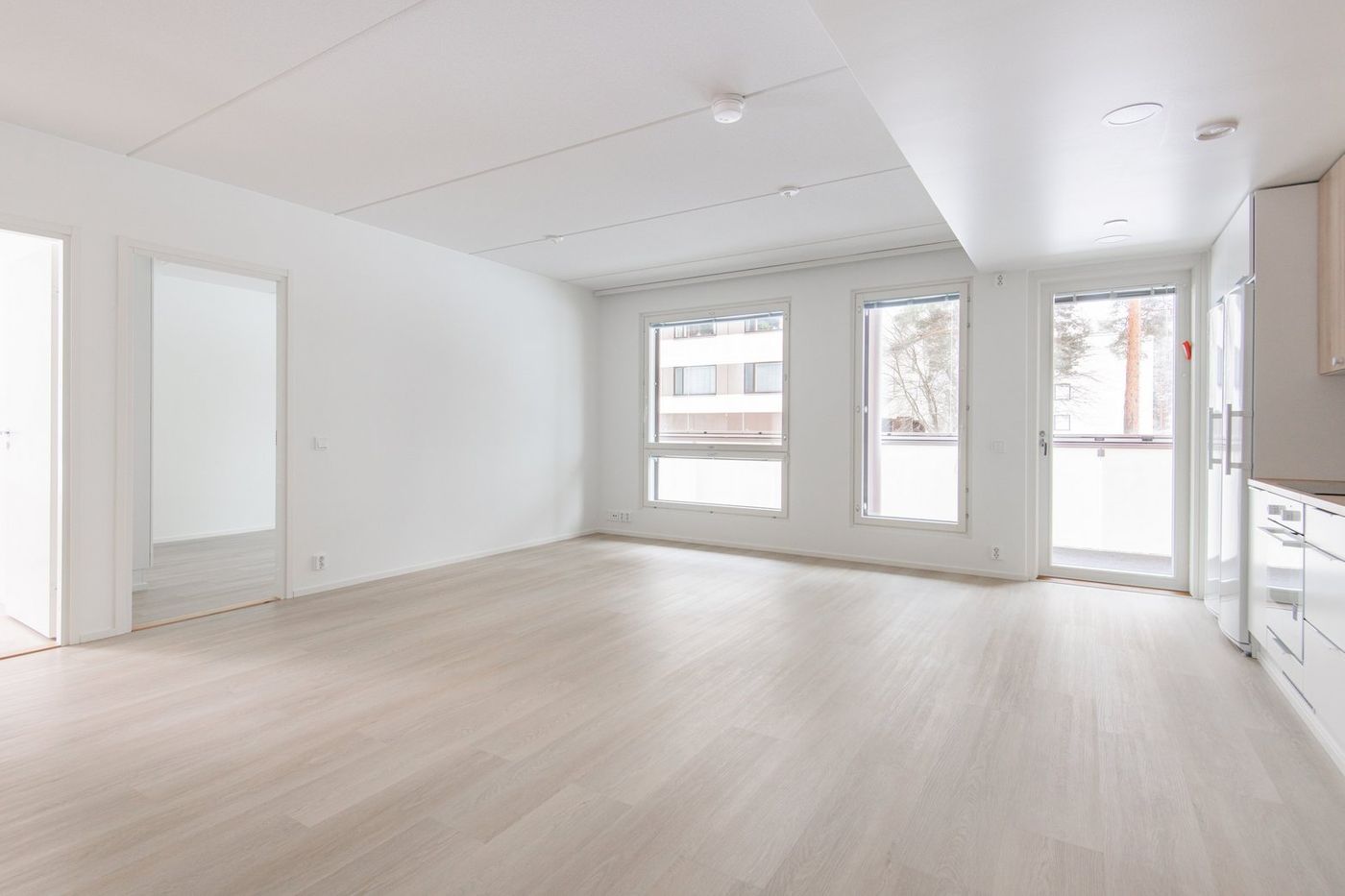 Valoisa kolmen huoneen koti, jossa on isot makuuhuoneet. Eteisessä on tilavat kaapistot, ja samalla seinällä on kodin keittiö. Keittiö avautuu yhtenäiseksi tilaksi ison olohuoneen kanssa. Keittiössä on mm. astianpesukone, reilusti laskutilaa ja täysikorkeat jääkaappi ja pakastin. Olohuoneessa on tilaa isommallekin ruokailuryhmälle ja oleskelukalusteille. Olohuoneesta on käynti kodin suurelle lasitetulle parvekkeelle, jossa on mukava nauttia kevään ensimmäisistä aurinkoisista päivistä ja syksyn viilenevistä illoista.