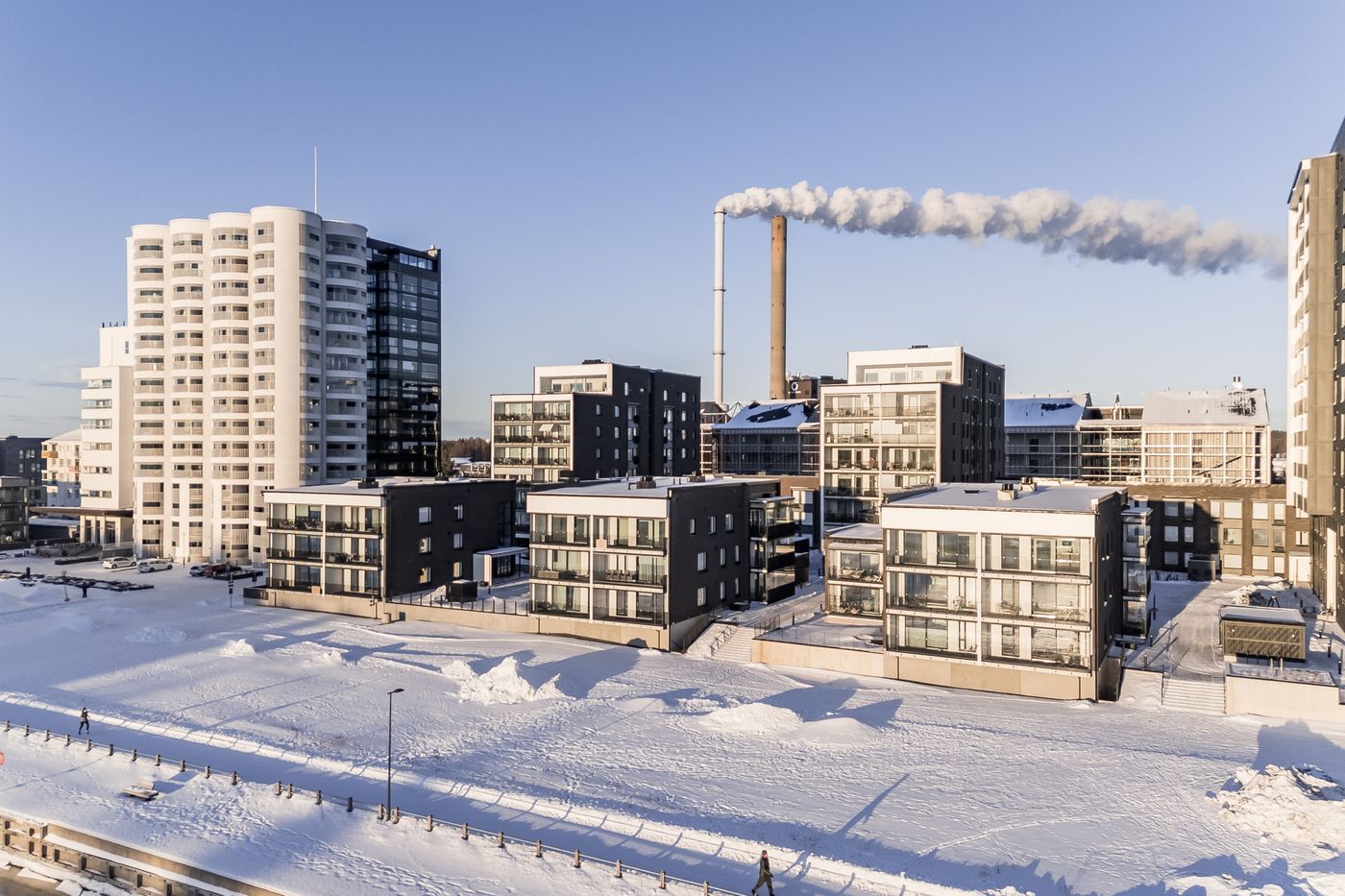 Toppilansalmen rannassa sijaitsevat Asunto Oy Oulun Satamanhelmen kolmekerroksiset rantatalot ja niiden 33 upeaa asuntoa täydentävät Möljän korttelin valmiiksi.